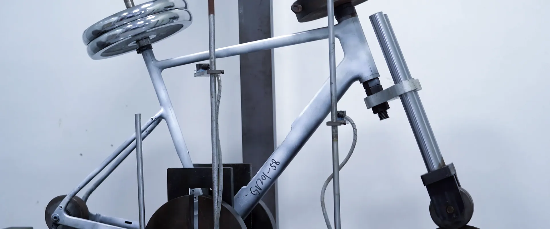 Carbon fiber bike frame impact tests simulate crashes, using weight drops to detect cracks and hidden damage, ensuring durability and safety for every ride.