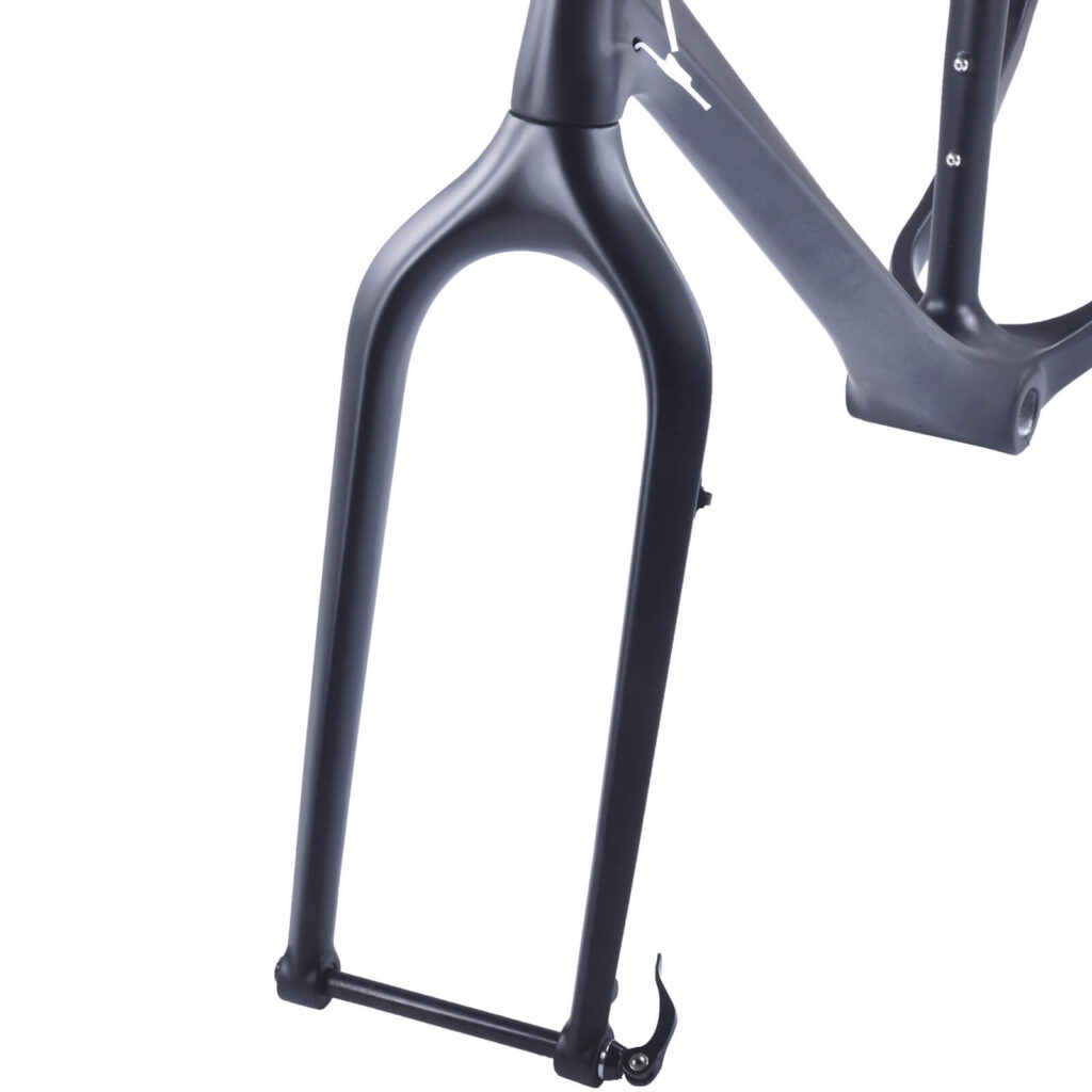 - Utrustad med en lätt 26-tums fatbike-gaffel i kolfiber, ger denna kolfiberram för fatbikes förbättrad styrkontroll och stabilitet för cykling med breda däck.